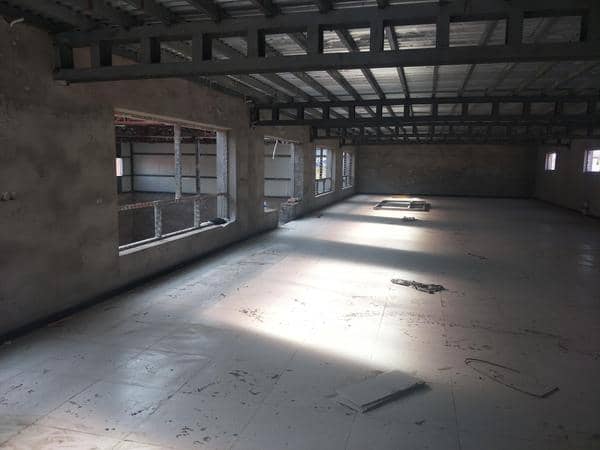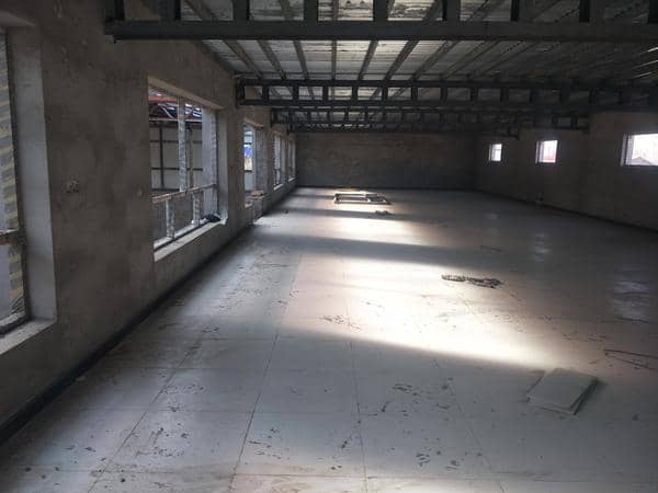 总占地面积600平米,两层厂房共500平米,一层厂房高4米,二层高3米,院子350平米。