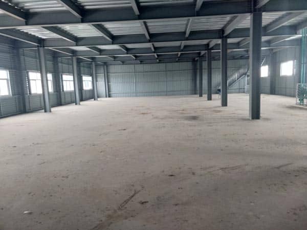 【二】 厂库房占地700平米,厂库房为钢结构面积1630平米 ,分为三层,一层层高5米 ,2层4.7米 ,3层4.5米。另有办公面积300平米总计1900平米 。