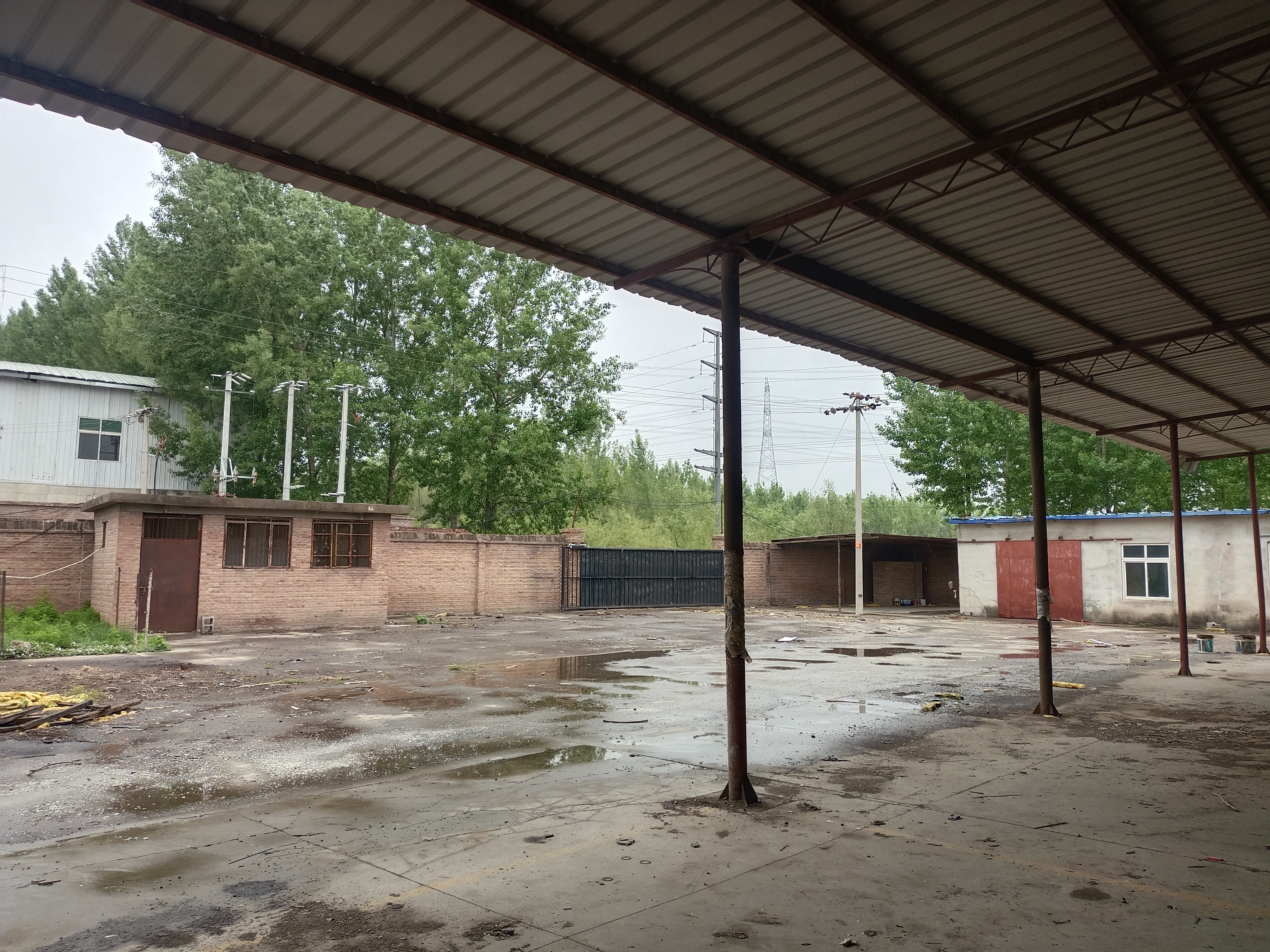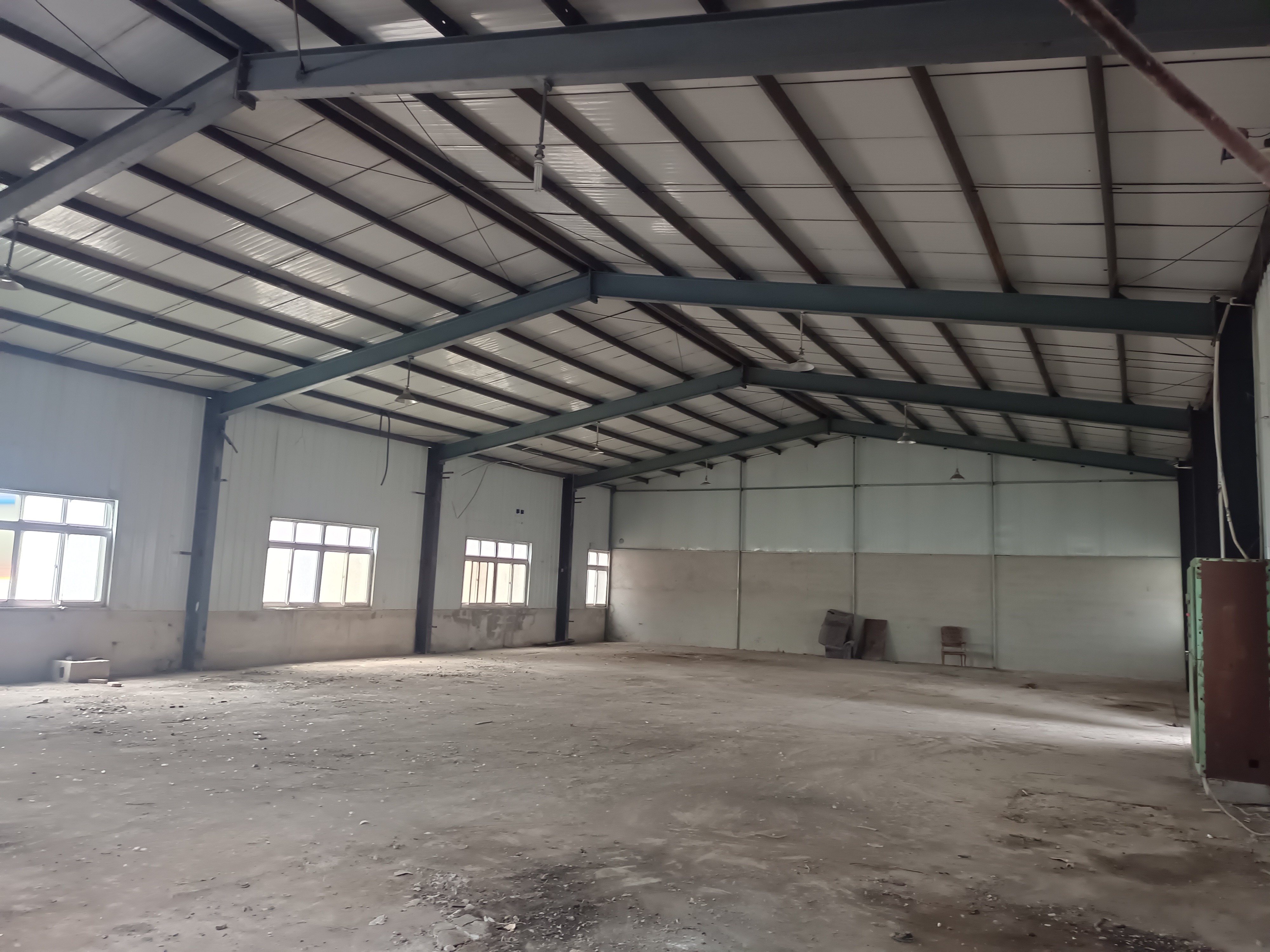 1800平米独院,雨棚面积除外,建筑面积800平米,其中大厂房面积450平米,办公100平米,宿舍,厨房250平米,其他是空地,水电齐全,通燃气,国有土地,可办理执照,整租,如果还可以扩大出租面积,距高速出口2公里